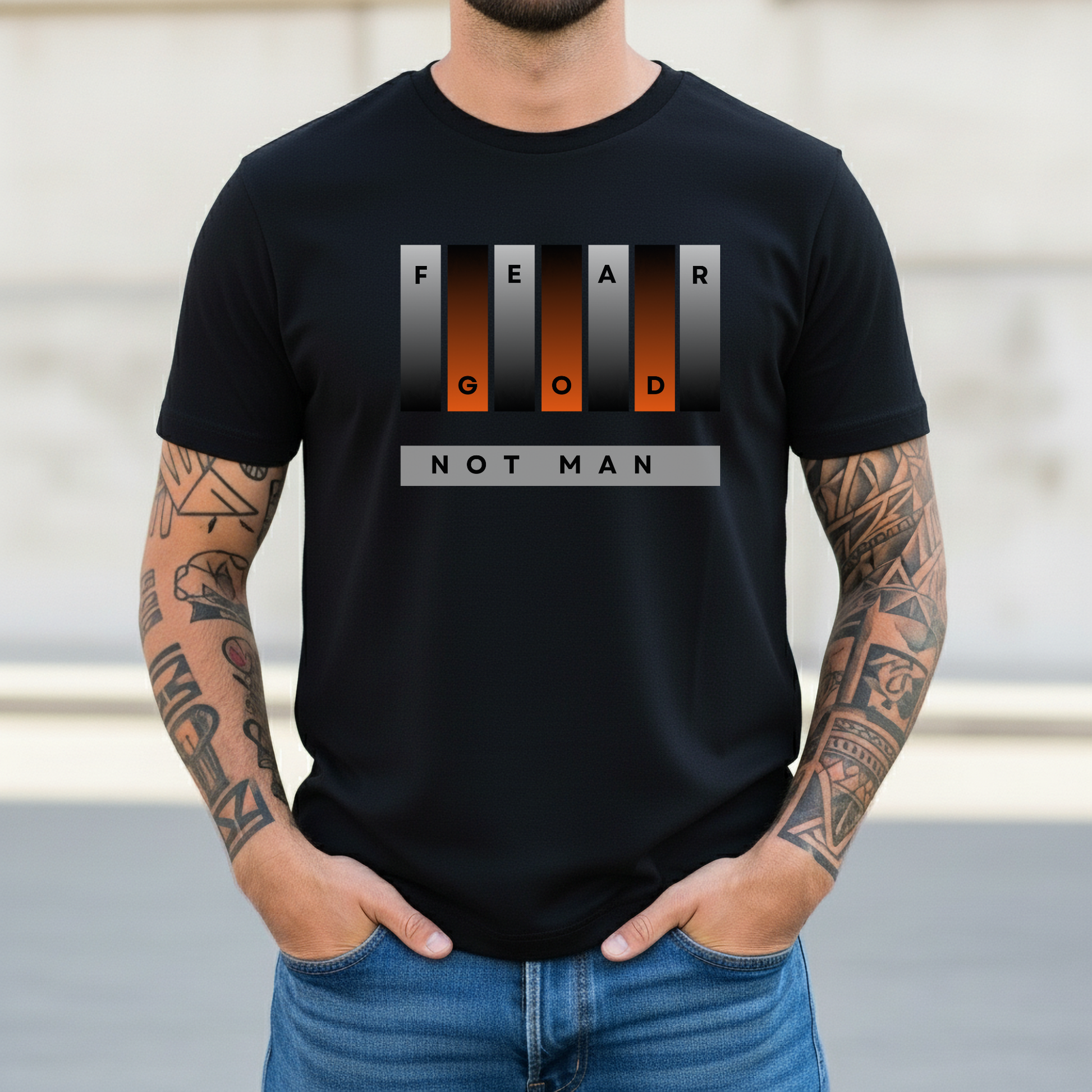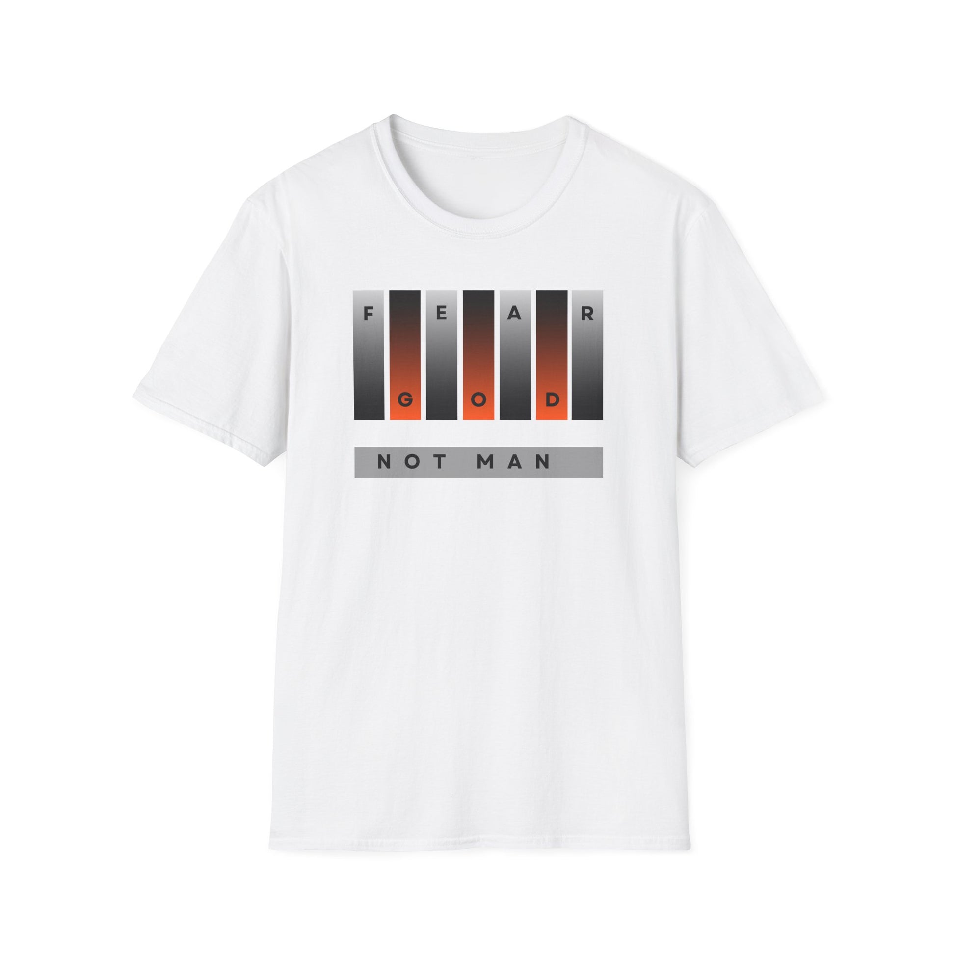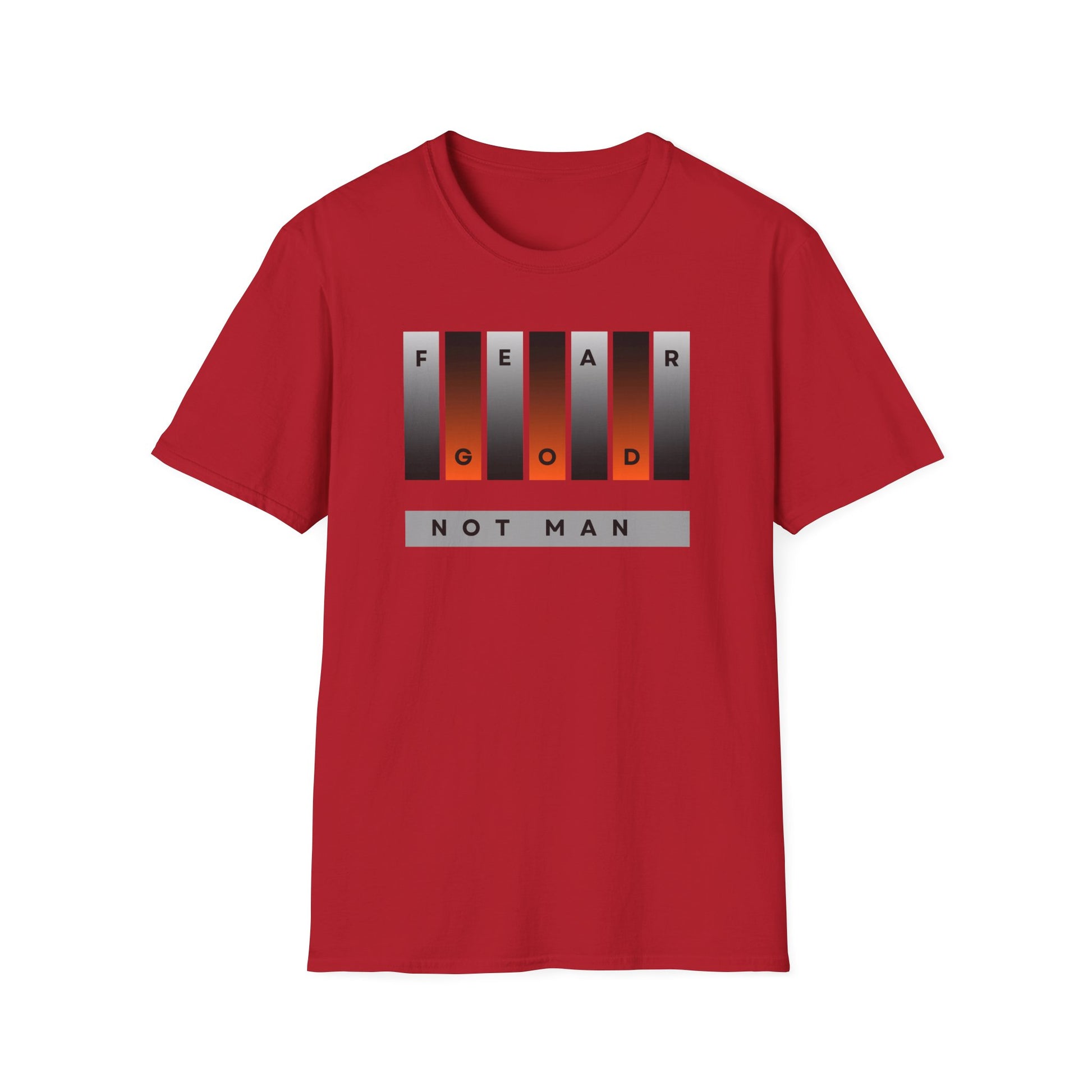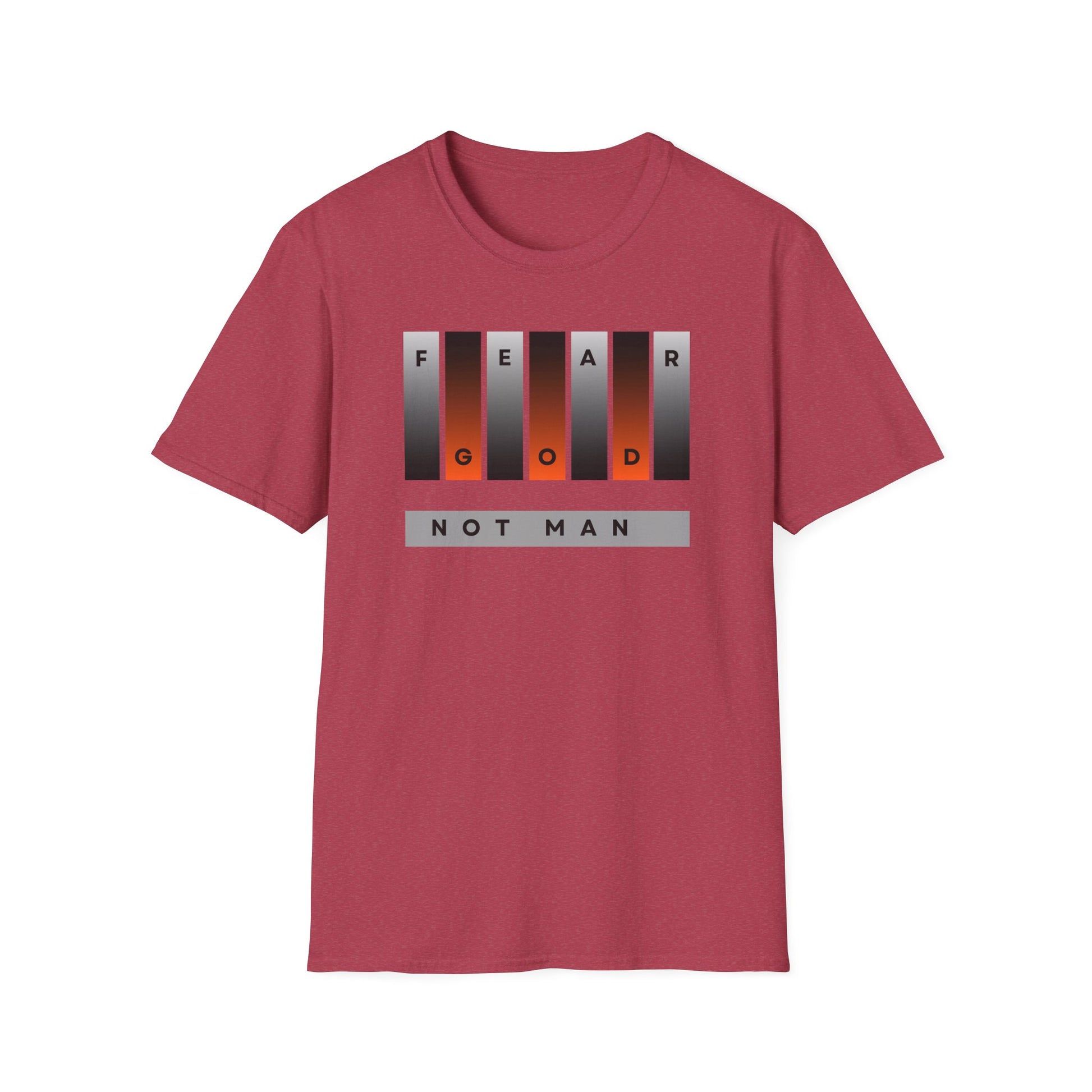 A powerful and bold unisex T-shirt with the message 'Fear God, Not Man'. This design delivers a clear message of faith and conviction. It speaks to believers who stand firm and live with courage. The phrase reflects biblical truth and personal strength. Wear it to church, events, daily life, or outreach.